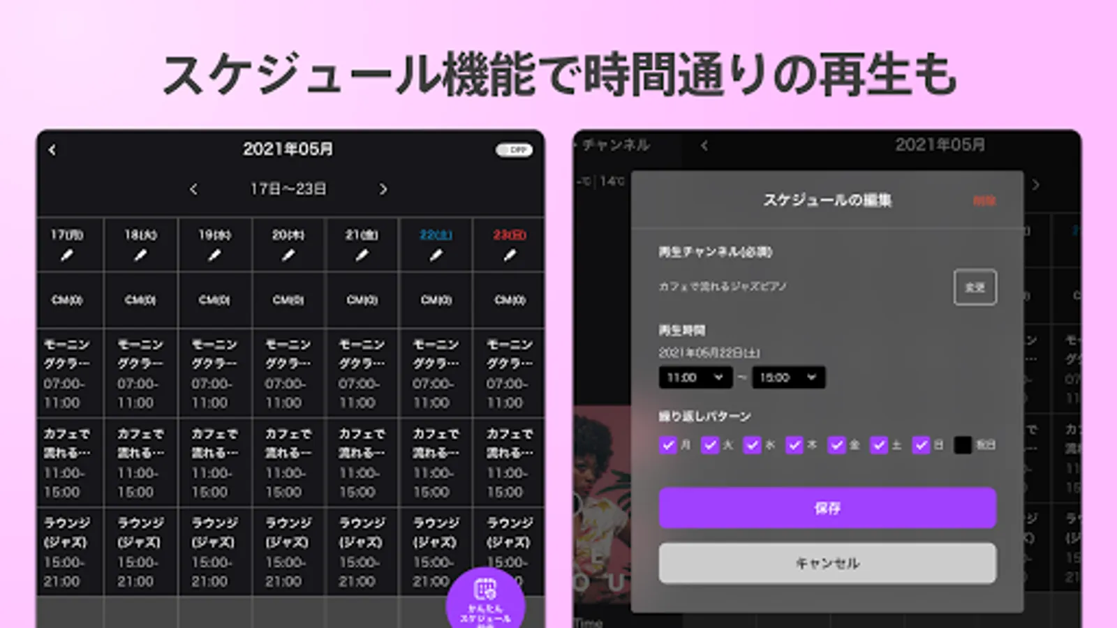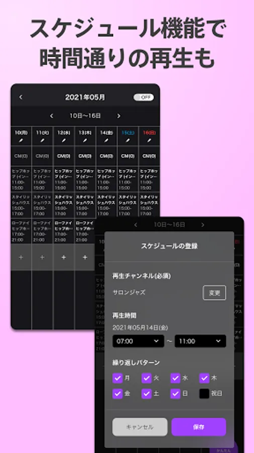・ Schedule function that allows you to set the time and change the music
