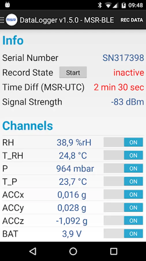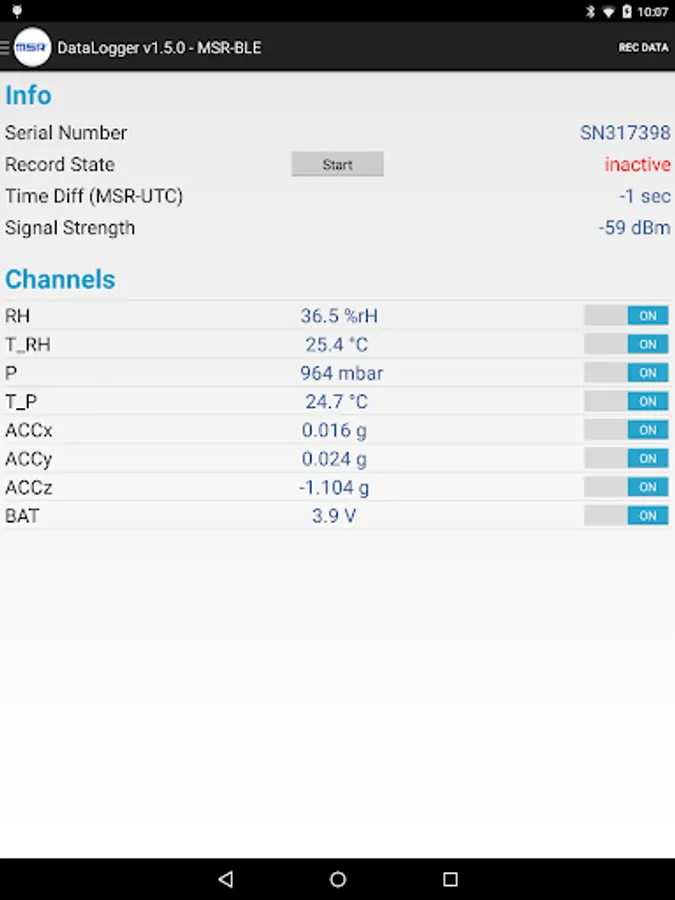 This application enables mobile devices to control MSR data loggers.