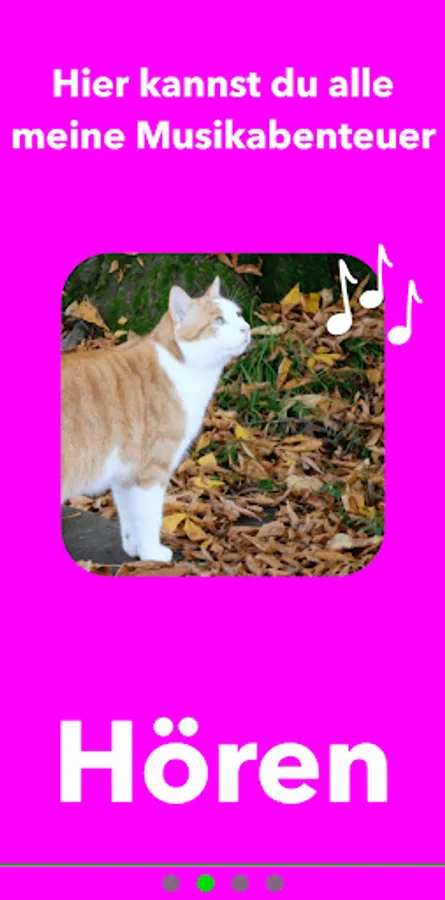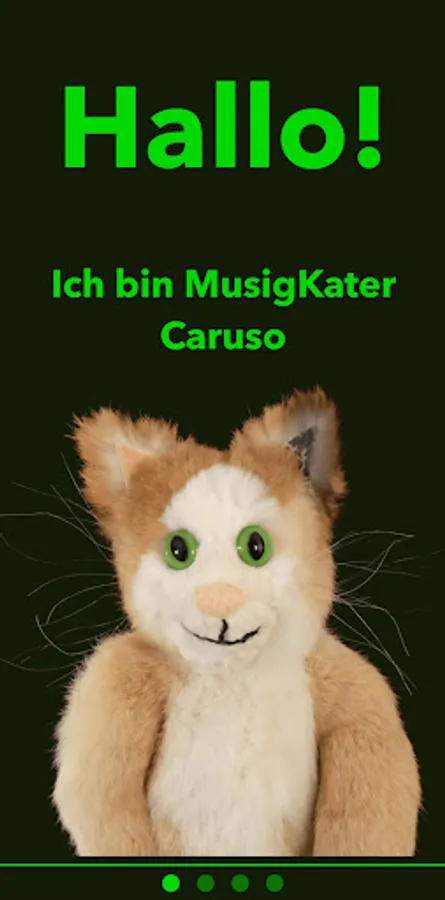 MusigKater Caruso is constantly experiencing new musical adventures. As a puppet, he regularly appears live on stage. Between his performances, his Caruso app can be used to listen to the adventures and watch his concerts.
