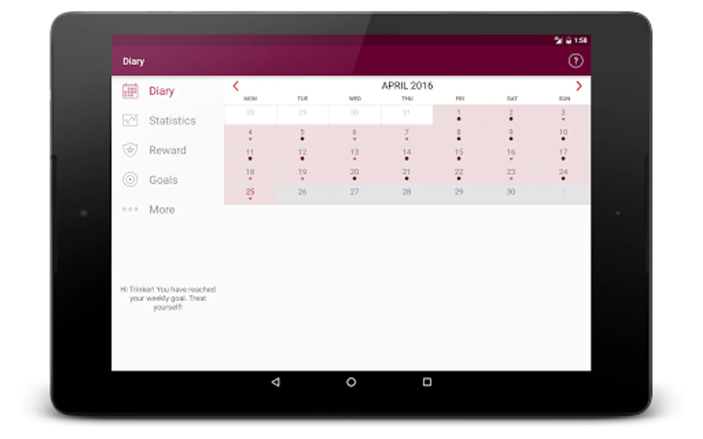 - graphically display your input as personal statistics (day / week / month)
