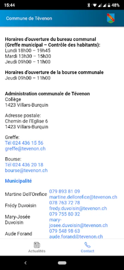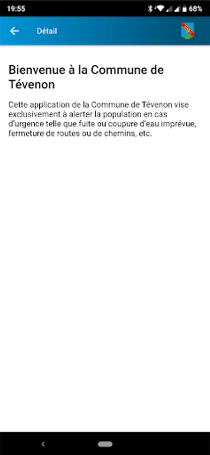 "Alerte Tévenon" is the application for alerter les habitants de la Commune de Tévenon en cas d'urgence telle que des fuites ou coupures d'eau ou encore des fermetures de routes ou de chemin.