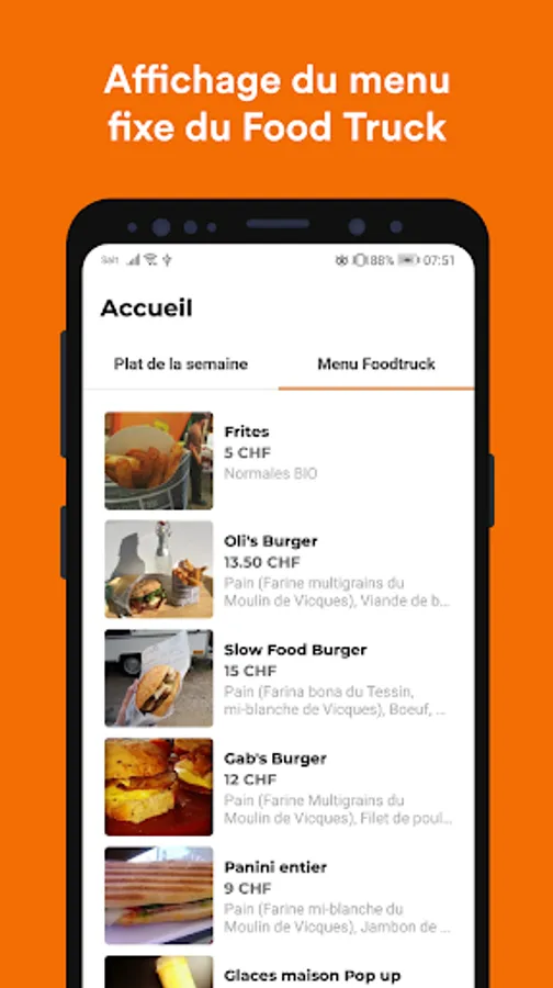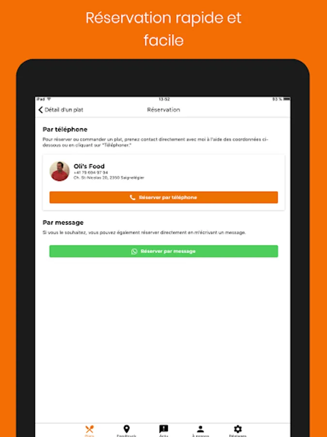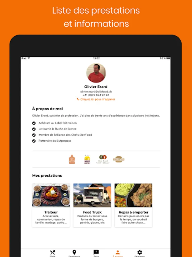 Discover Oli's Food: Catering, Food Truck and preparation of take-out meals. From your smartphone, consult the dish of the week, the fixed menu available at the Food Truck trailer as well as its location on an interactive map.