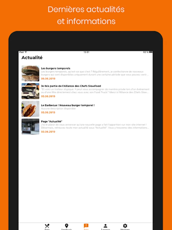Stay informed of the latest news and information from Oli's Food thanks to the news page in the app.