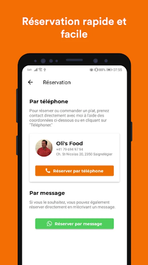 Reservation possible directly from the application.