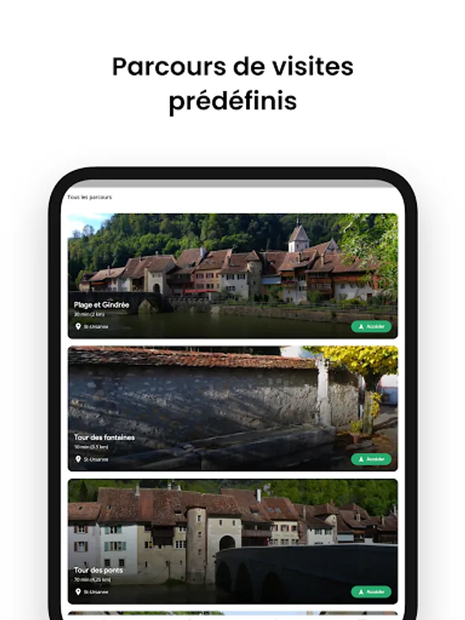 Discover the city Saint-Ursanne in the Swiss Jura with your smartphone and discover its sights and its most interesting monuments. 360 ° panoramas will offer you a total immersion in the Medieval city. Orient yourself using the interactive map and the GPS system. Benefit from a predefined list of routes to help you plan your visit. List of hotels, shops and restaurants with their opening hours also at your disposal.