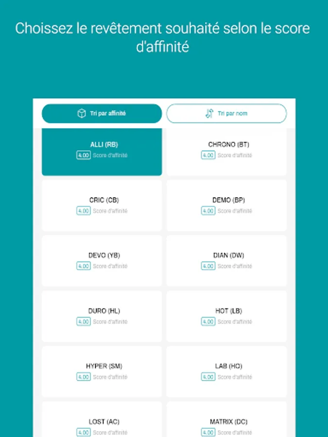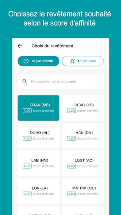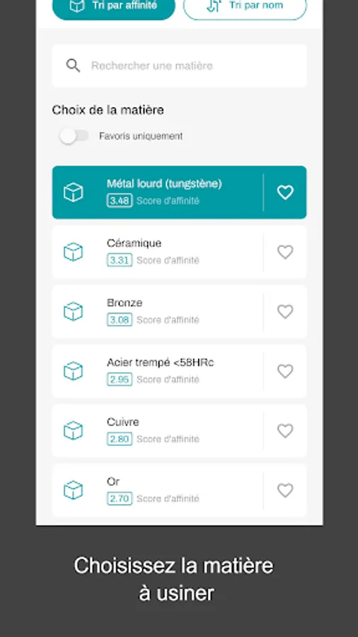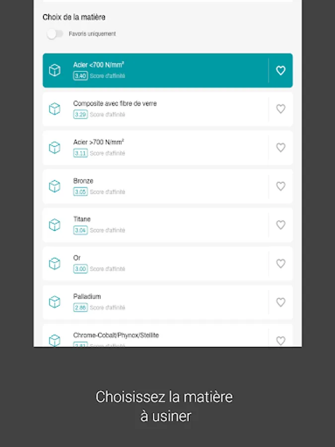 The app suggests the best yarn, coating, and material to machine based on your selection using an automatically calculated affinity score.