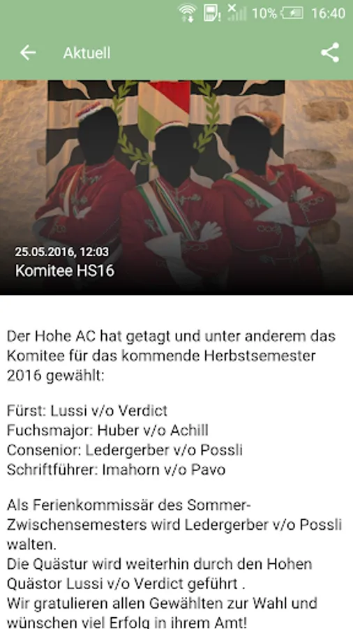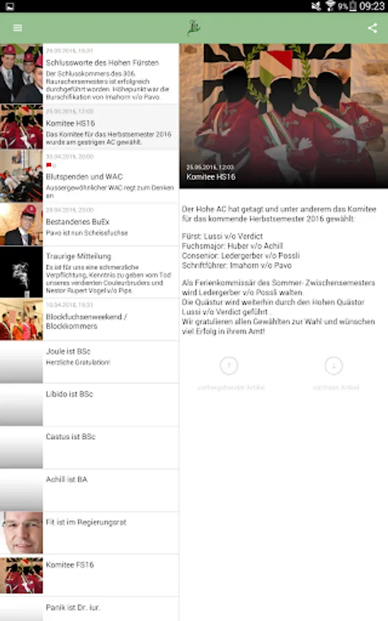 Members of the compound also have access to the members directory import function, internal photography galleries, on registration forms for events, in various documents and a Cantusprügel.