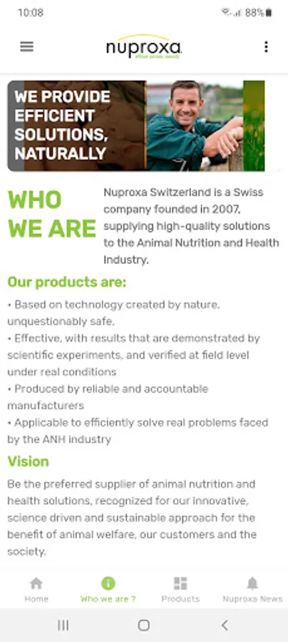Supplier of animal nutrition and health solutions, recognized for our innovative, science driven and sustainable approach for the benefit of animal welfare, our customers and the society.