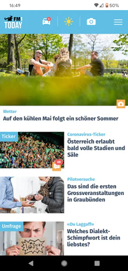 The app for your life in eastern Switzerland. But actually there are four apps in one. Why? The FM1Today app is a cube that can be rotated. On the first page you will find FM1Today and are always well informed and entertained. With FM1Today you will not miss a topic that Eastern Switzerland is talking about. Our editors are up close in St. Gallen, Thurgau, Appenzell and Graubünden. In addition, they provide you with the most important news from Switzerland and the world but also with entertaining videos, surveys, quizzes or listicals.