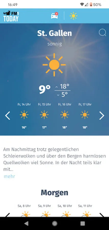 That's not enough. If you turn the FM1Today app to the third cube page, you have your own weather page with details for your town and the rest of Eastern Switzerland. You can plan your closing time and the weekends perfectly.