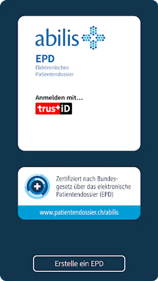 In order to be able to use the Abilis EPD app, you must first create an electronic ID (trustID) in order to be able to identify yourself securely and to ensure the protection of your personal data, and then open an EPD in an Abilis partner pharmacy.