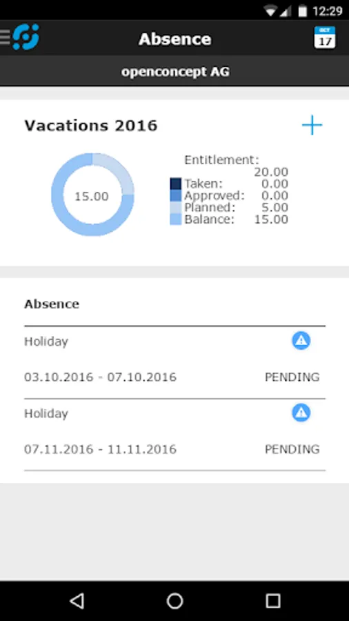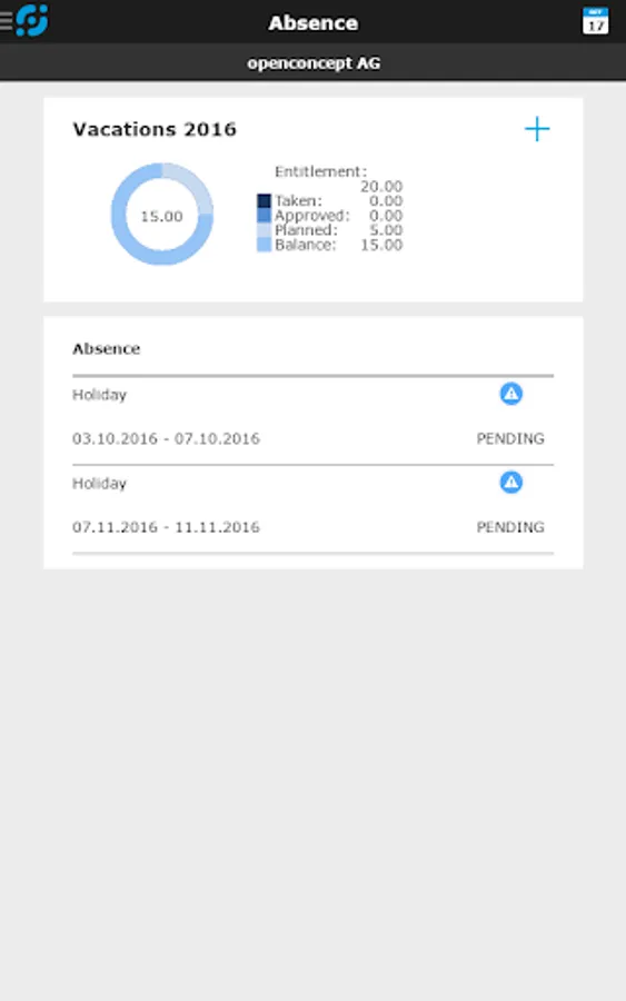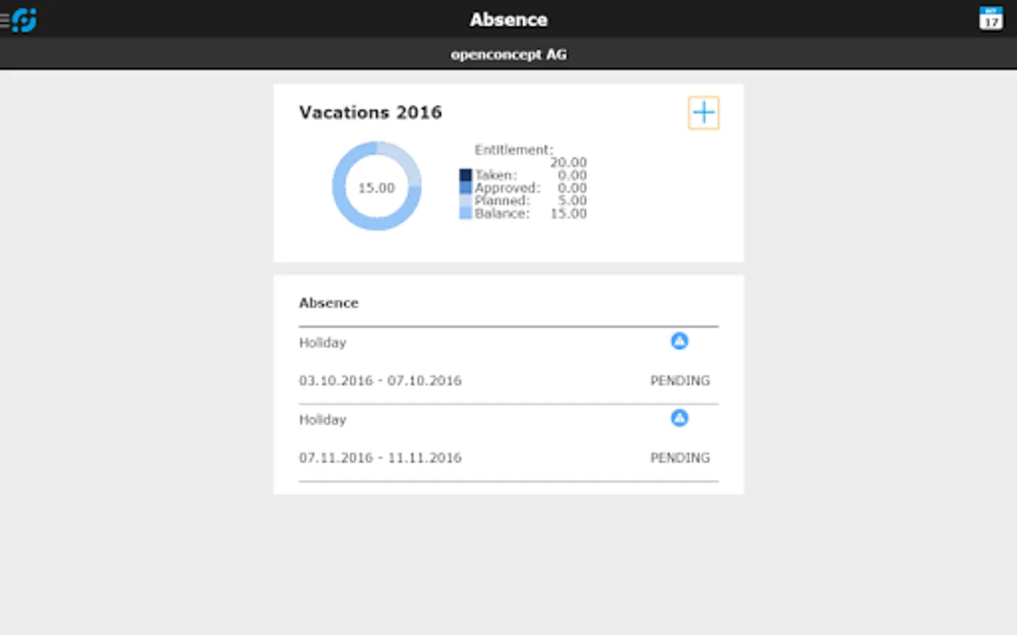 - The absences are configurable individually (holiday, maternity leave, military duty, etc.)