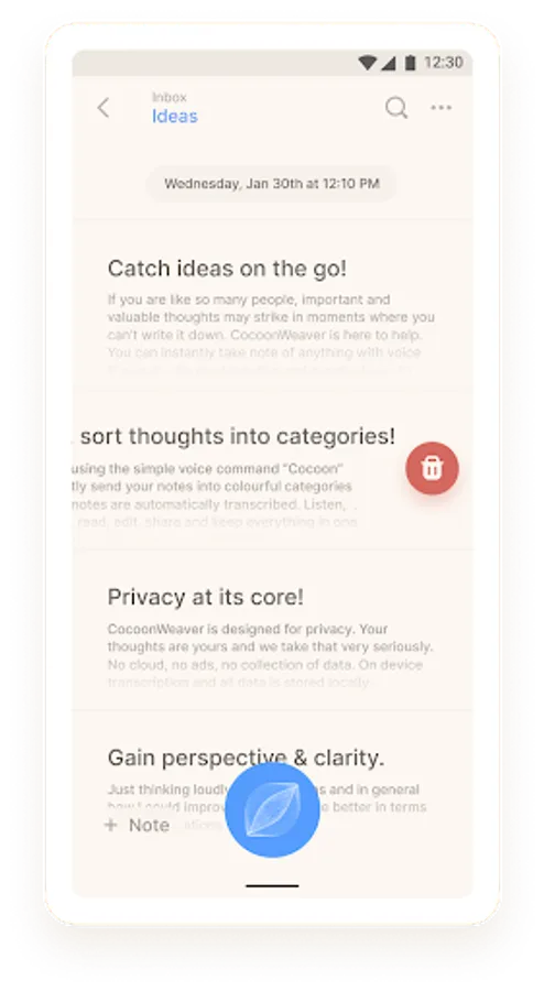 CocoonWeaver enables you to instantly transcribe audio notes into categories and gain intuitive access to your mind. Use this beautifully designed & specialized PRIVATE thought journal now for FREE!
