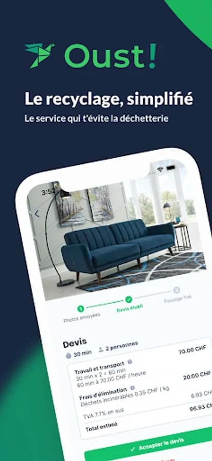 - Unique Passages: get rid of anything in one photo! If you do not want an old sofa for example, you can take a picture and complete some information. Soon after, you will receive the prize so that we at your home will pick it up and eliminate it. If the price suits you, you can directly choose the date and time of our passage.