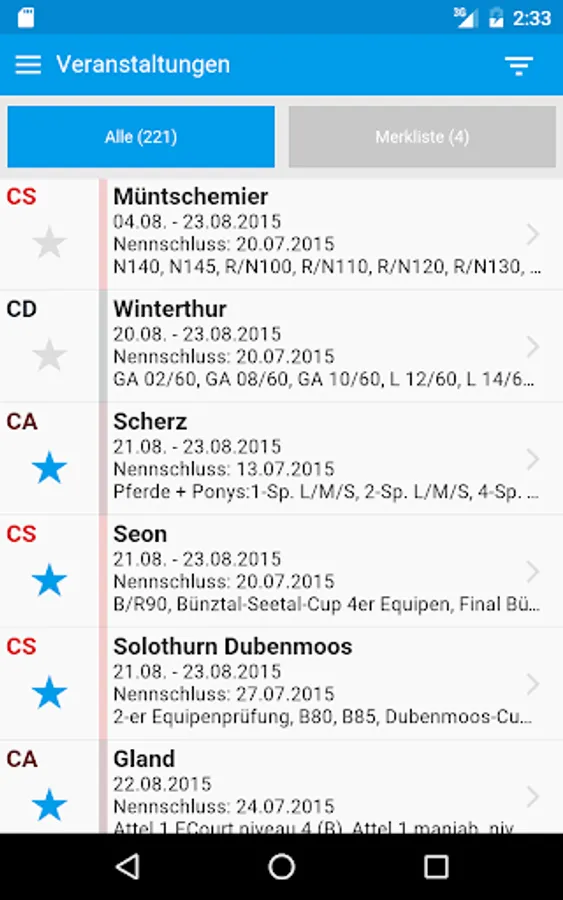 to keep the app to your regional and national equestrian activities in Switzerland at any time at a glance