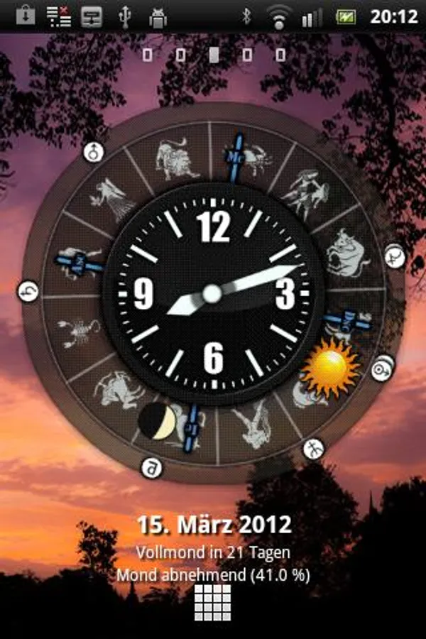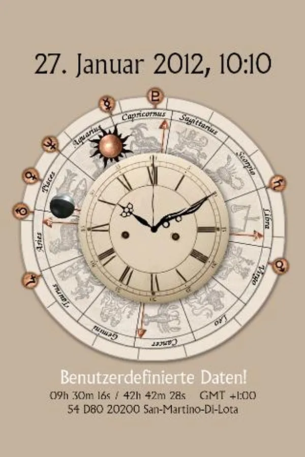 This analogue clock shows you the most important astronomical and astrological information at a glance: