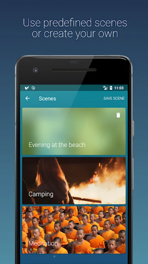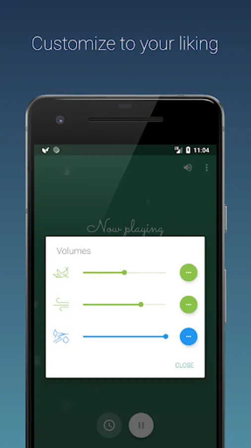Only want it to run for a certain amount of time? Use the integrated timer to have the sounds stop with a nice fade after you are asleep.