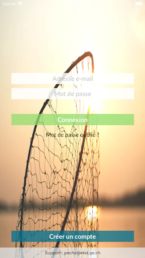 Warning: To be able to use the Pêche Ge application, the user must have previously applied for a fishing license with the e-procedures of the canton of Geneva.