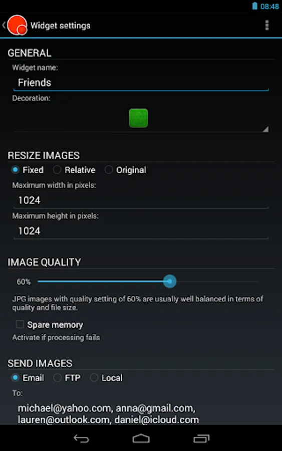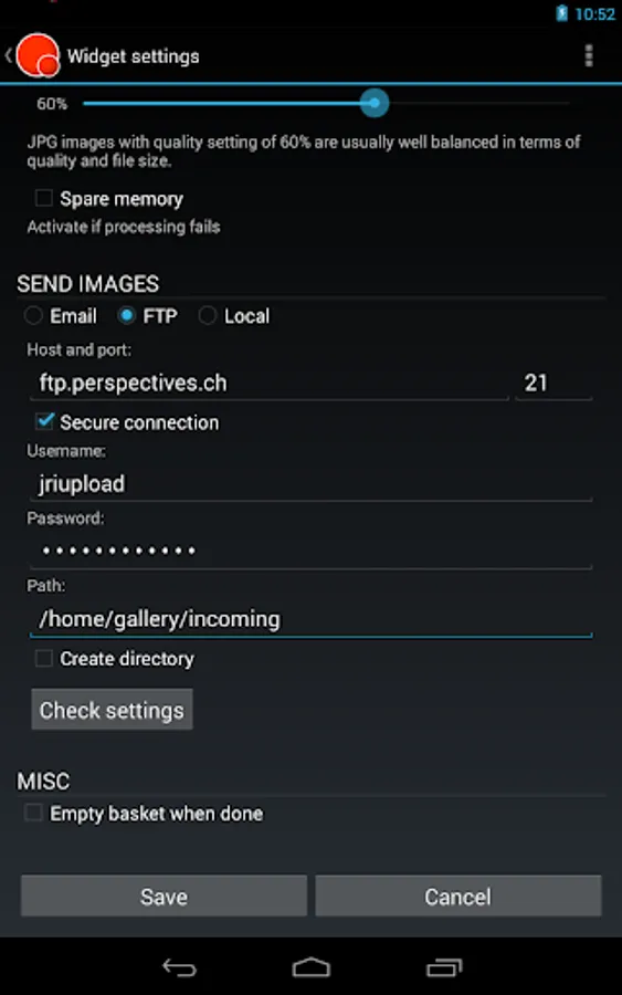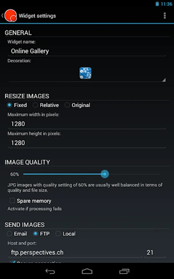 - Save your mobile space with resized files or upload files to a FTP/FTPS server in the cloud