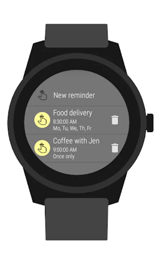 Add your one time or repeated reminders on the watch and let the watch notify you without having a smartphone nearby.