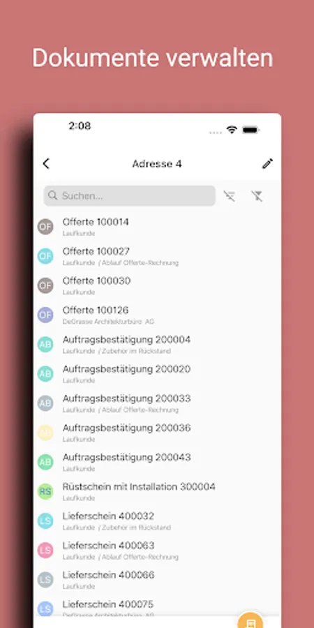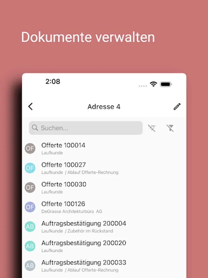 Check a delivery note or an offer while on the go? Or check a customer's turnover? No problem with the useful additional features of pfx addresses such as the document preview or the address information from Proffix CRM