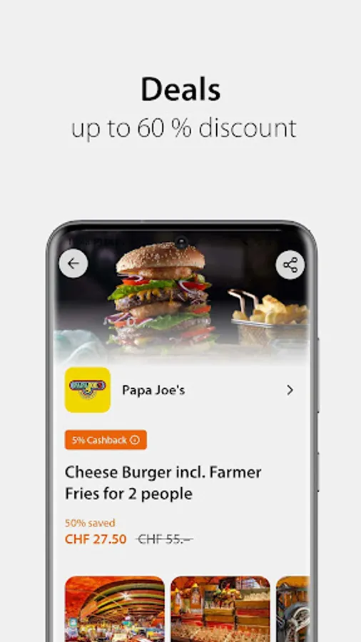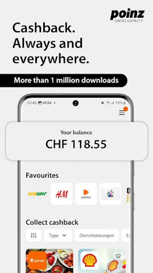 With poinz you collect cashback, pay only half for attractive deals all over Switzerland and have your loyalty cards and stamp cards always at hand in your smartphone.