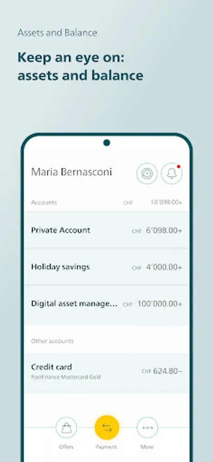 • Samsung Pay: add PostFinance credit cards directly via the PostFinance App or Samsung Wallet to use Samsung Pay