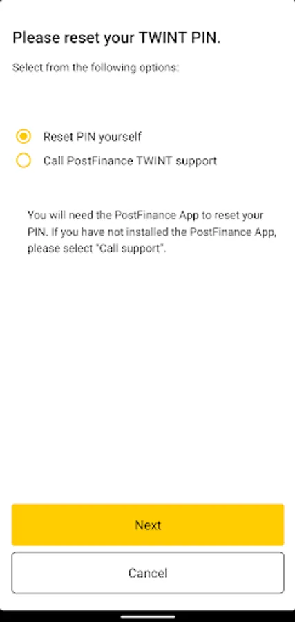 PostFinance TWINT is the digital means of payment for everyone with a PostFinance private account. Easily link your personal postal account to the PostFinance TWINT App with a few simple steps and use it instantly. The direct debit on the relevant account is made automatically. You can also store credit cards (MasterCard or Visa) and use them to pay.