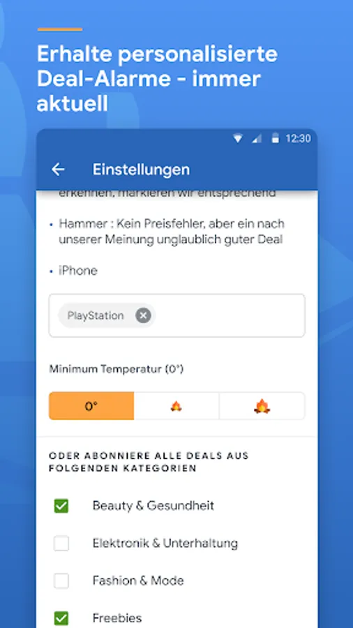 The best promotions are usually sold out within a few minutes. With our push notifications you stay up to date and receive information when there is an unbelievable offer in a shop. You can also subscribe to push notifications for your favorite shops, entire categories or for your favorite items.
