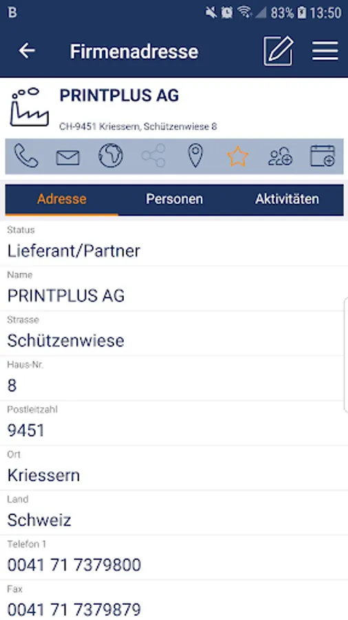Users of the industry software Printplus DRUCK connect the app directly with the integrated CRM solution Printplus DRUCK IVIS. The connection enables reconciliation of changed and collected data with the central enterprise database. Unlike many other solutions, the data is synchronized directly between the device and the company database and is not cached in any cloud.