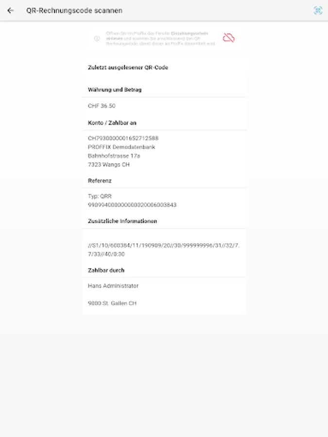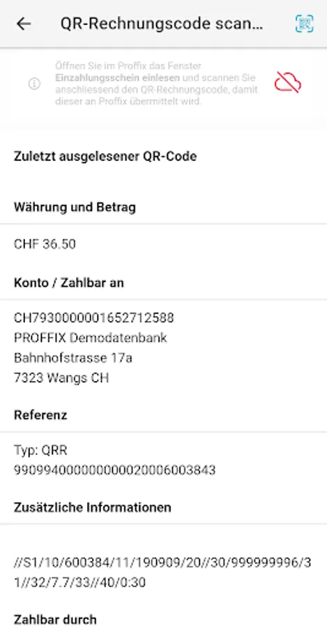 From September 30, 2022, the red and orange payment slip will be finally replaced by the QR-bill. With the Proffix Scanner App, you have a free app at your disposal with which you can transfer, pay and post your QR invoice receipts directly to Proffix. The scanner app can also only read and transmit the QR code without you having to scan a complete QR invoice receipt.