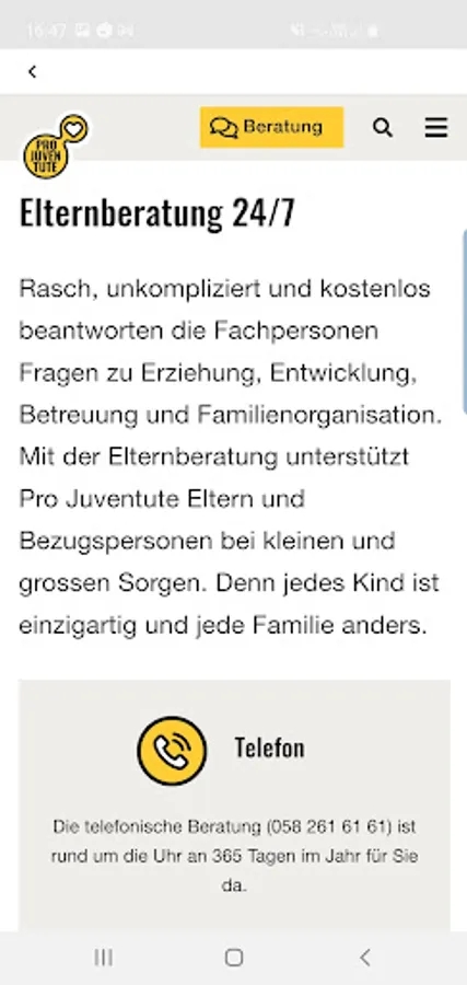 - Zugang zur kostenlosen und vertraulichen Elternberatung von Pro Juventute