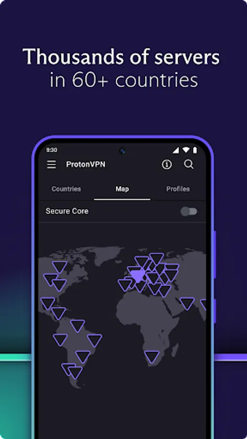 • Secure Core servers protect against network-based attacks with multi-hop VPN