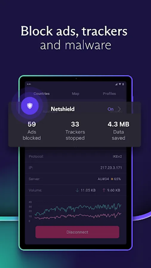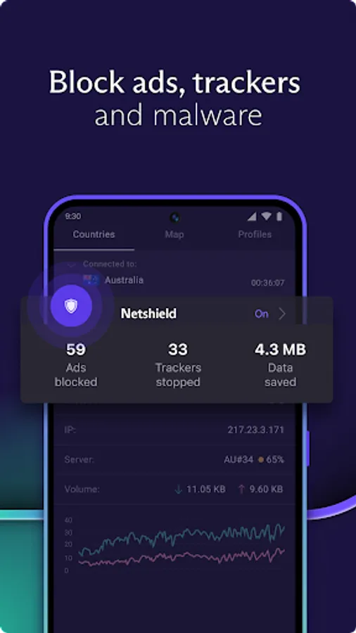 • Ad blocker (NetShield): a DNS filtering feature that protects you from malware, blocks ads, and prevents website trackers from following you across the web