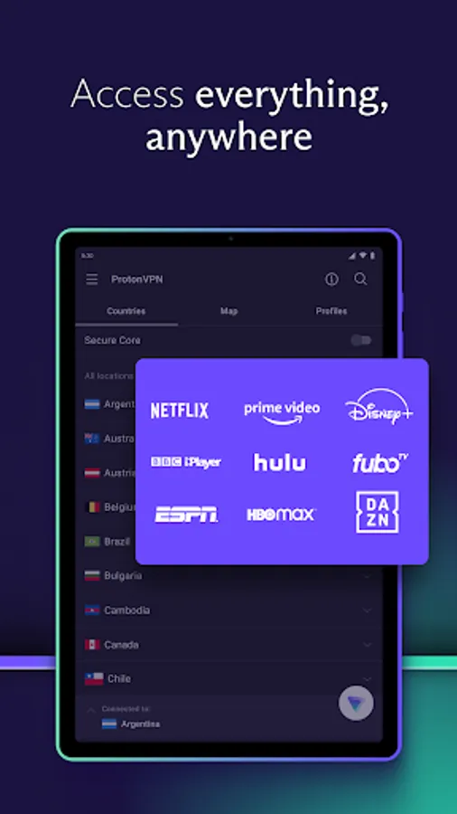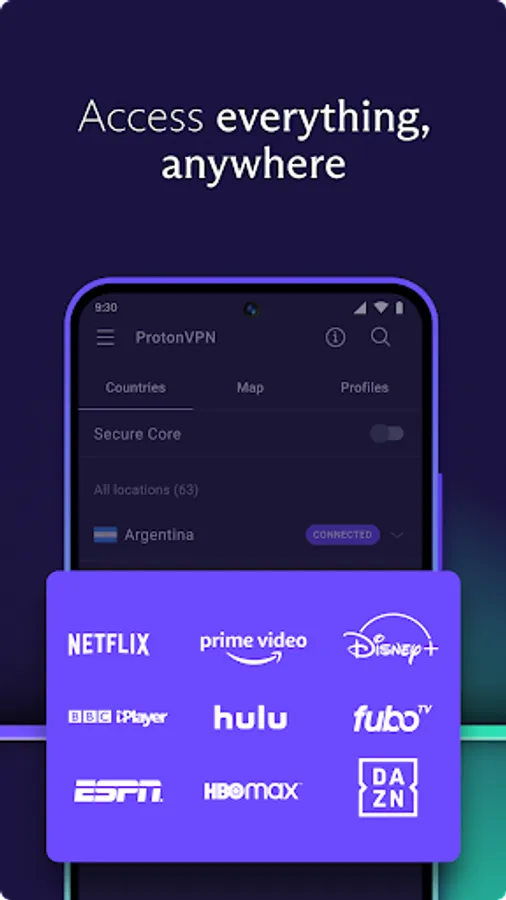 Used by millions worldwide, Proton’s secure no-logs VPN offers 24/7 safe and private internet access, and does not record your browsing history, display ads, sell your data to third parties, or limit downloads.