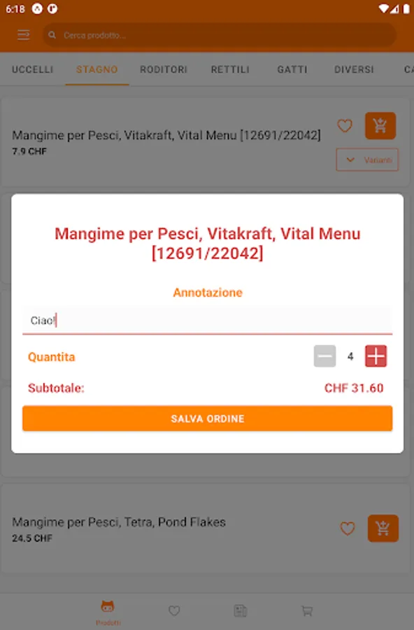 Food and accessories for animals, aquarium.