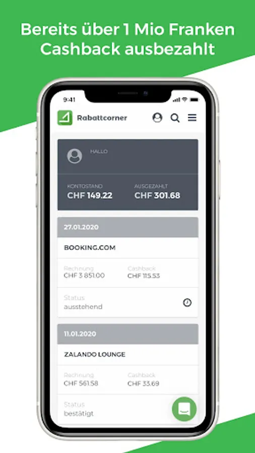 Cashback is an amount of money that you get back for your purchases when you shop through our platform. If you use our app for your online purchases in one of our partner shops, we will receive a commission that we will share with you. As soon as you have completed your order, the transaction and your cashback amount will appear in your user account. From a total amount of CHF 20.- you can have your money transferred to your bank or PayPal account. Very simple and uncomplicated!