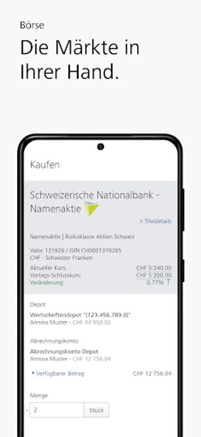 With the Raiffeisen E-Banking App, you have all the e-banking applications on your smartphone or tablet with you. You want to quickly check your account balance, place a stock market order or scan and pay an invoice? With Mobile Banking, all e-banking functions are available on the go.