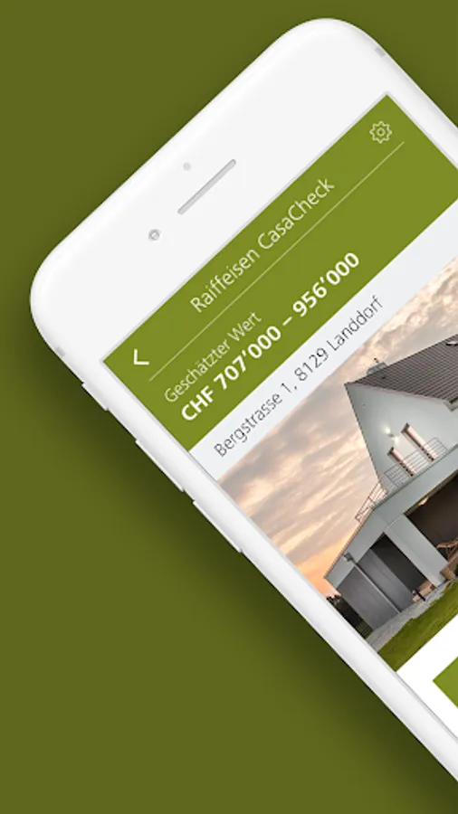 With the app «Raiffeisen CasaCheck» you can easily and quickly determine the value of your property. For this purpose, a property can be photographed and it appears immediately a first quick review. By entering a few parameters, the value can be specified.