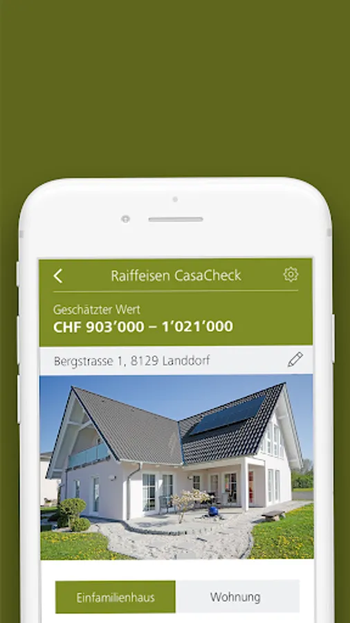 Raiffeisen CasaCheck is a free offer for real estate owners and those who would like to be. The app allows by photographing a property to carry out an indicative initial assessment. It is recognized by the modern image recognition technology, whether the photo is a one-family house or an apartment. Based on this, the user can adjust additional criteria in the app to specify the estimated value. Alternatively, a location address may be entered to provide an estimate. The user may calculate portability and lending based on the bandwidth displayed and their individual financial situation, e-mail the rating, or provide information directly to the app Call the community. It is also possible to start a contact request in the app to the local Raiffeisenbank.