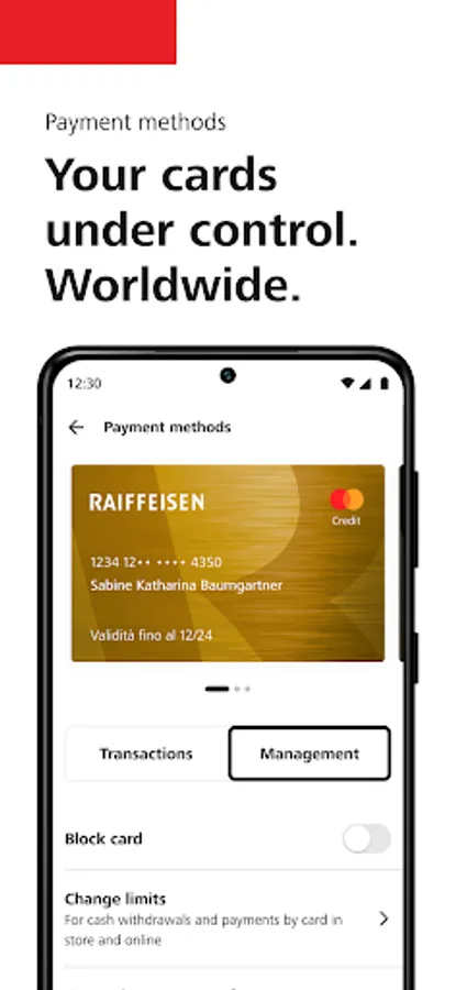 - Manage and control your credit and debit cards. Change limits or block your card. Simply and directly in the app.