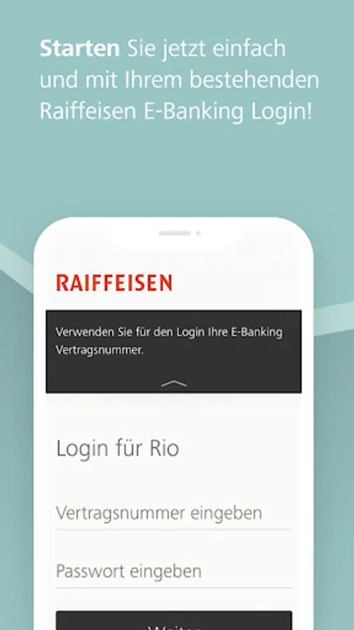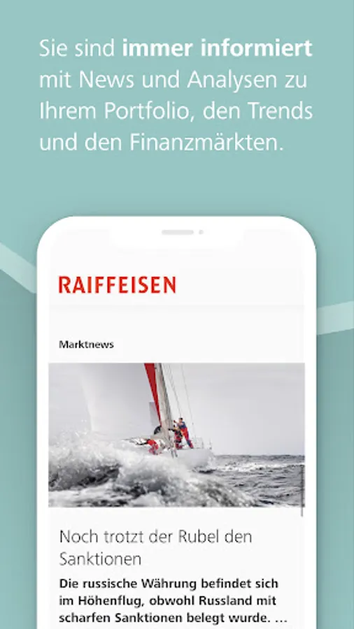 The information and / or documents offered on this website correspond to marketing material in accordance with Art. 68 of the Swiss FinSA and are for informational purposes only. We draw your attention to the fact that by downloading, installing and / or using this app, third parties regardless of their location (e.g. Google Inc., network operators, device manufacturers, etc.) draw conclusions about the existence of a current, past or potential future business relationship between the user and the Raiffeisen Group.