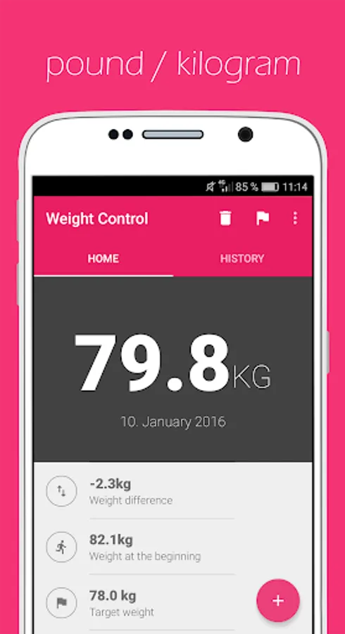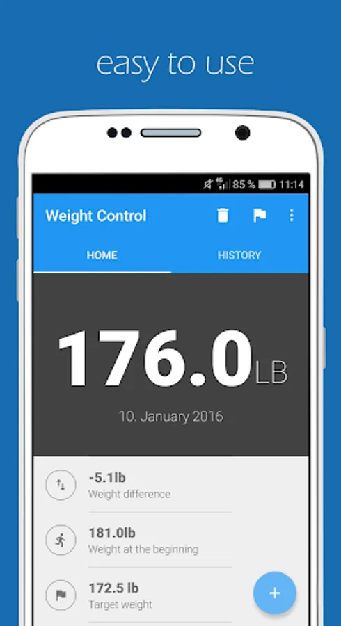 The app „Weight Loss Tracker“ offers you an easy opportunity to track your weight and supports you on the way to your dream figure. Whether you want to loss or gain weight, it's important to have an overview of your weight.