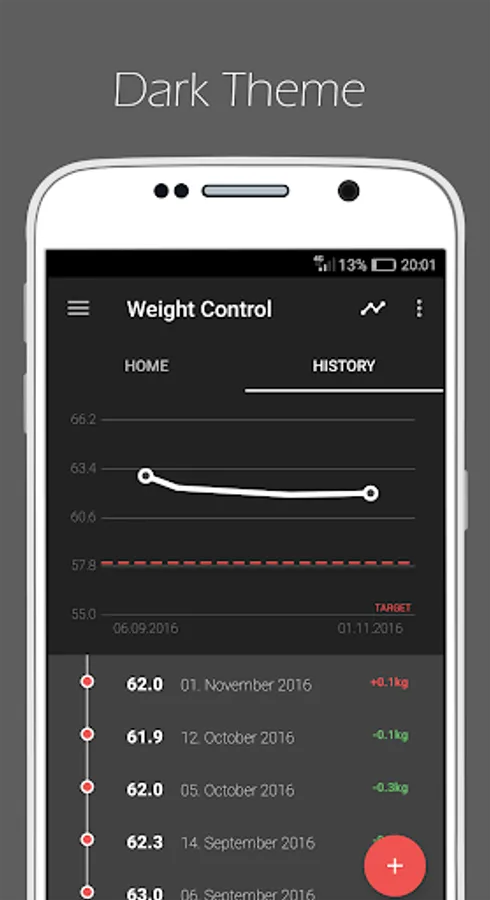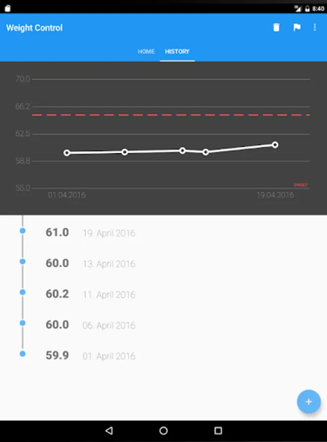 This weight diary app provides you only the most important functions and renounces on unnecessary things. You only need two clicks a day to enter your weight and save your precious time for other activities. Start now with monitoring the loss or gain of your weight.