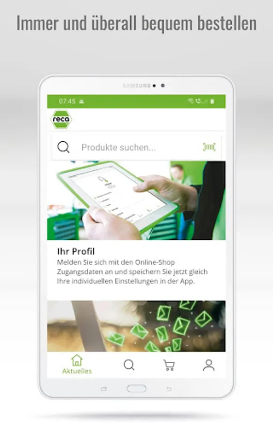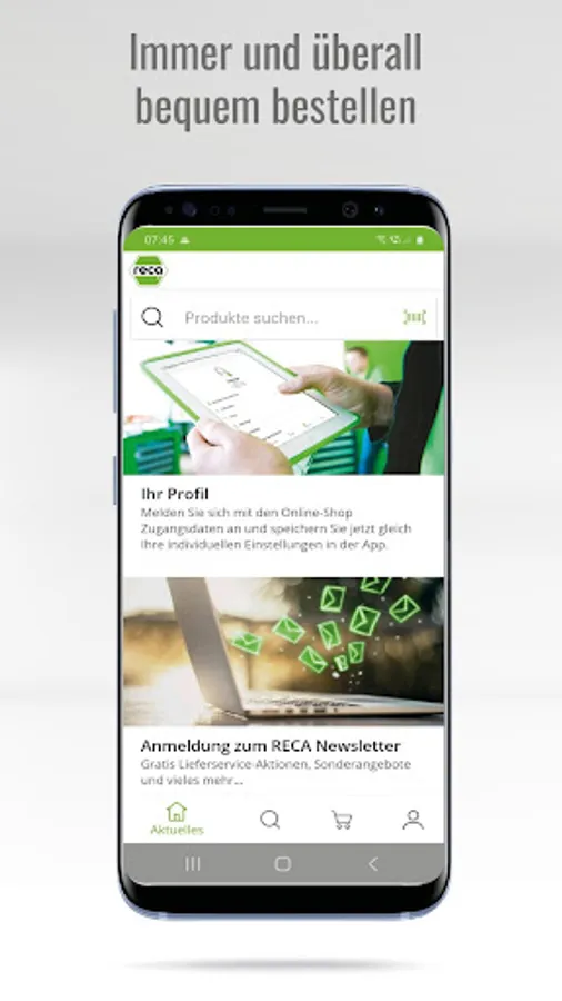 Approval process, shipment tracking, order templates, favorites list and much more - the RECA app brings the advantages and functions of the online shop to your smartphone or tablet.