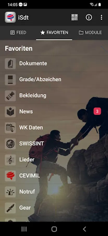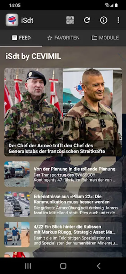 iSdt is the soldier app for the Swiss army. Up-to-date information about your own military service, access to WK data, information from the associations, rights and obligations, advice in the event of difficulties, Tenü codes, military abbreviations, emergency addresses and another 40 modules from every military subject.