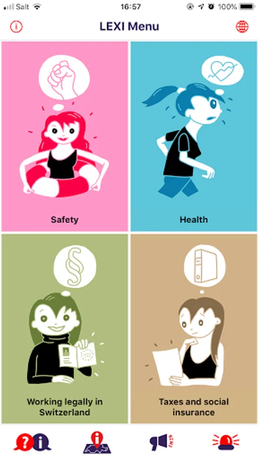 LEXI app provides information on health, safety, work, taxes and social security issues. It is available in the following languages: