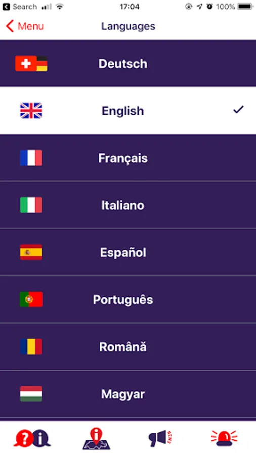 Deutsch, English, Français, Italiano, Español, Português, Română, Magyar, български, Polski, ไทย, slovenský