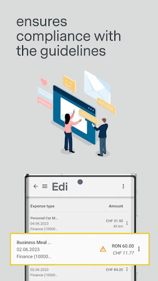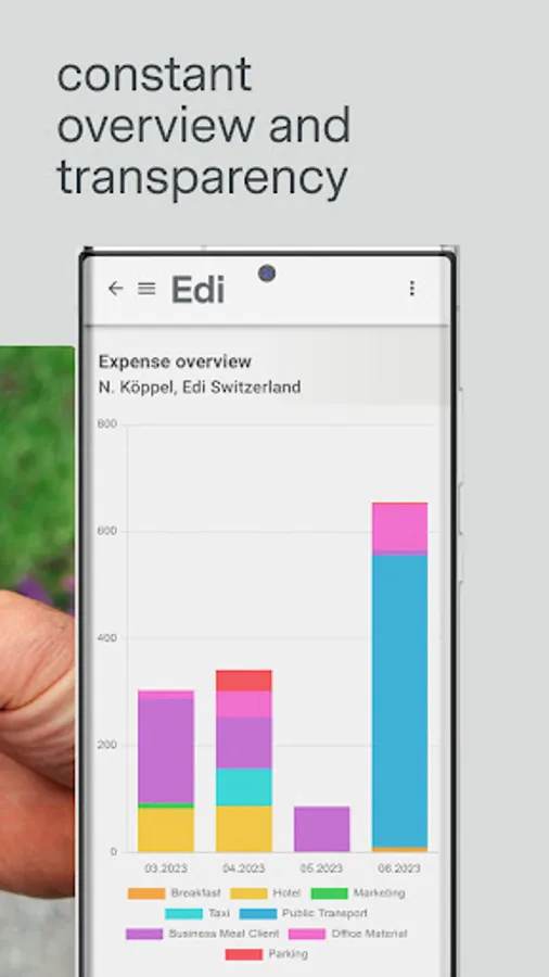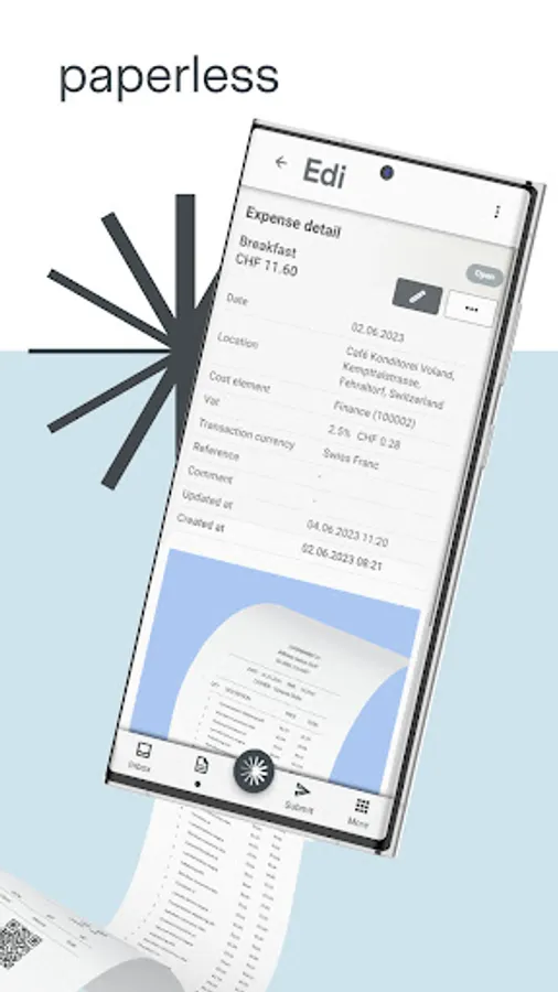 Scan the receipt, save it and Edi takes care of the rest - from the compliance check to the automatic release of expenses. Whether on the go via app, chatbot or at the office on the desktop.