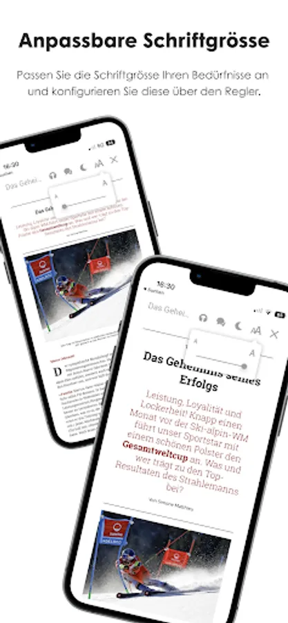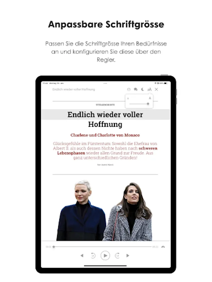 - Font size continuously configurable
